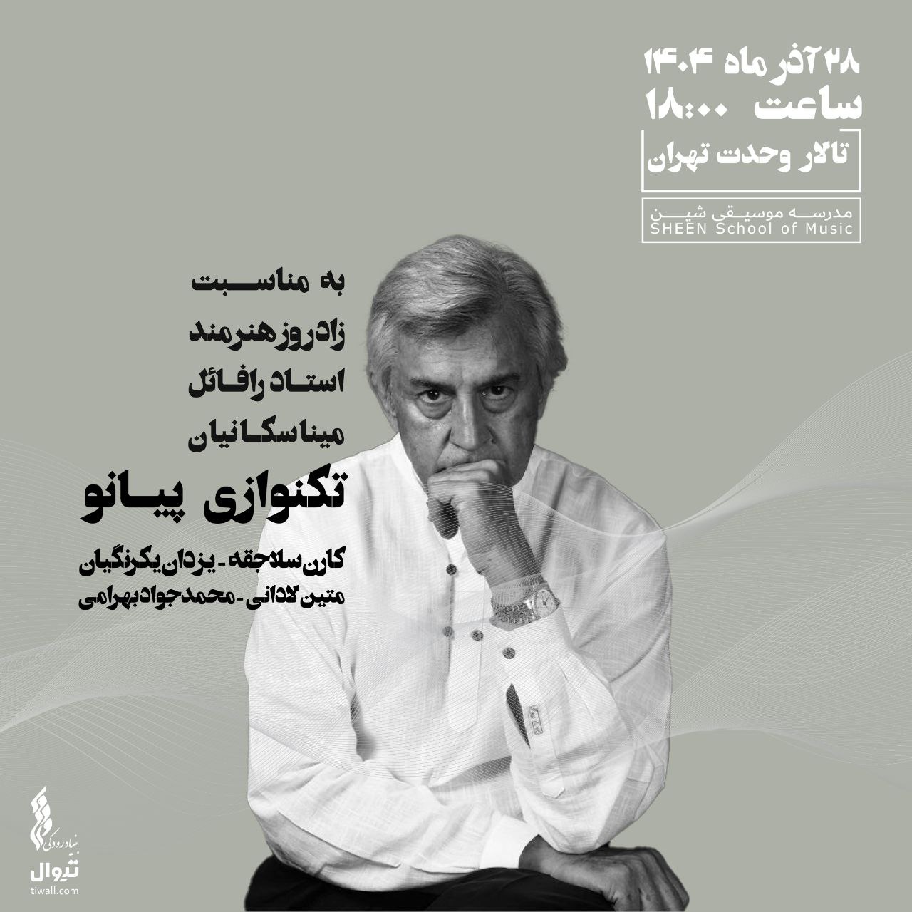 این کنسرت همزمان با سالروز هشتاد و چهار سالگی رافائل میناسکانیان نوازنده پیشکسوت پیانو برگزار میشود.